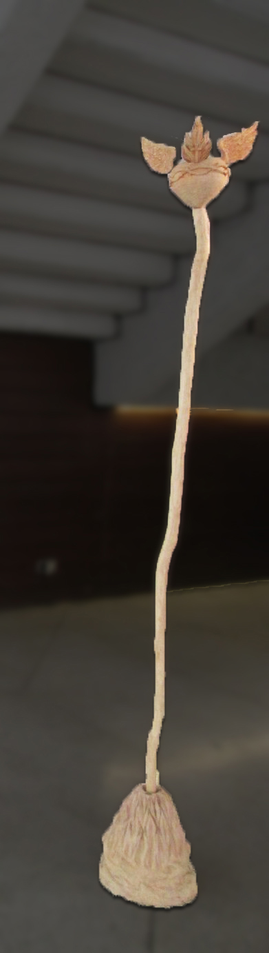Alfredo Esquillo, on the other hand, keenly focuses on the potencia, the ray of light that is contrived as a copper crown of the Black Nazarene. For the artist, this is a trope of an emanating, radiating light that is the vein of potency. These are the shapes of his ground or surface that he overlays with pineapple fiber, which in itself is painstakingly embroidered. Seen from afar, the configuration, which is a palimpsest, looks like a symbol of Philippine revolutionary and millenarian movements, and at the same time an aura of light of the sacred. The nationalist, the spiritual, and the personal converge to form a trinity, so to speak. The artist, moreover, proceeds to enhance the trope of the gospel by way of an installation of wooden and winged megaphones that pervade the air with doctrine and temptation. According to Esquillo: “Without ‘loob’ or awareness of it, ‘labas’ (outside, body, flesh, materiality) becomes meaningless. And while ‘loob’ creates meaning for ‘labas’, the concept of ‘lalim’ (depth) also comes into play when meaning is considered.