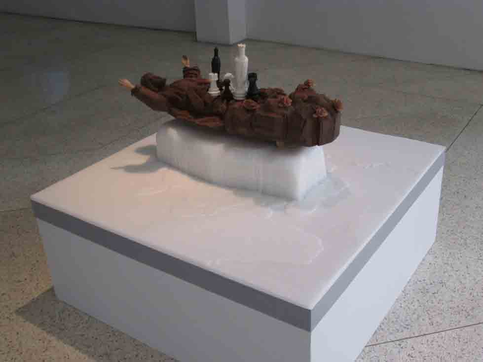 Renato Habulan, for instance, references the various vessels of the said communion, the many ways in which the gods are imitated or regarded as kin. The gargantuan and copiously ornamented cane or tungkod is the scepter of a savior or a redeemer; it could also be the storied walking stick of a disciple. He turns to the armature of colonial statuary that renders the icon like a mannequin, as well as to the ingenious takatak, the invention of vendors who dispense merchandise from a wooden box of compartments. He casts amulets in paraffin, trapping them in a morass of sumptuous wax. And he carries an altar laden with totems and figurines on an intricately decorated cart as if its goods were being peddled. Finally, there is the sagradong pwesto, a sacred site for the pilgrim that is tended like a grotto or a garden or a church in situ. In these endeavors, Habulan is adamantine about his reason for being: “I want my art to tell the stories of our people and the triumph of the human spirit in their daily struggle.” For him, the terms human, spirit, and daily struggle are not caught up in a contradiction; their relative alienations are transcended.